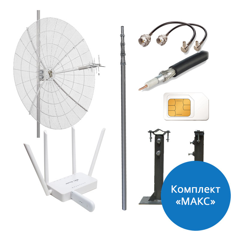 Максимальный комплeкт для безлимитнoго интepнетa 3G/4G(LТE) с дополнительной внешней параболической MIMO антенной 27 дБ